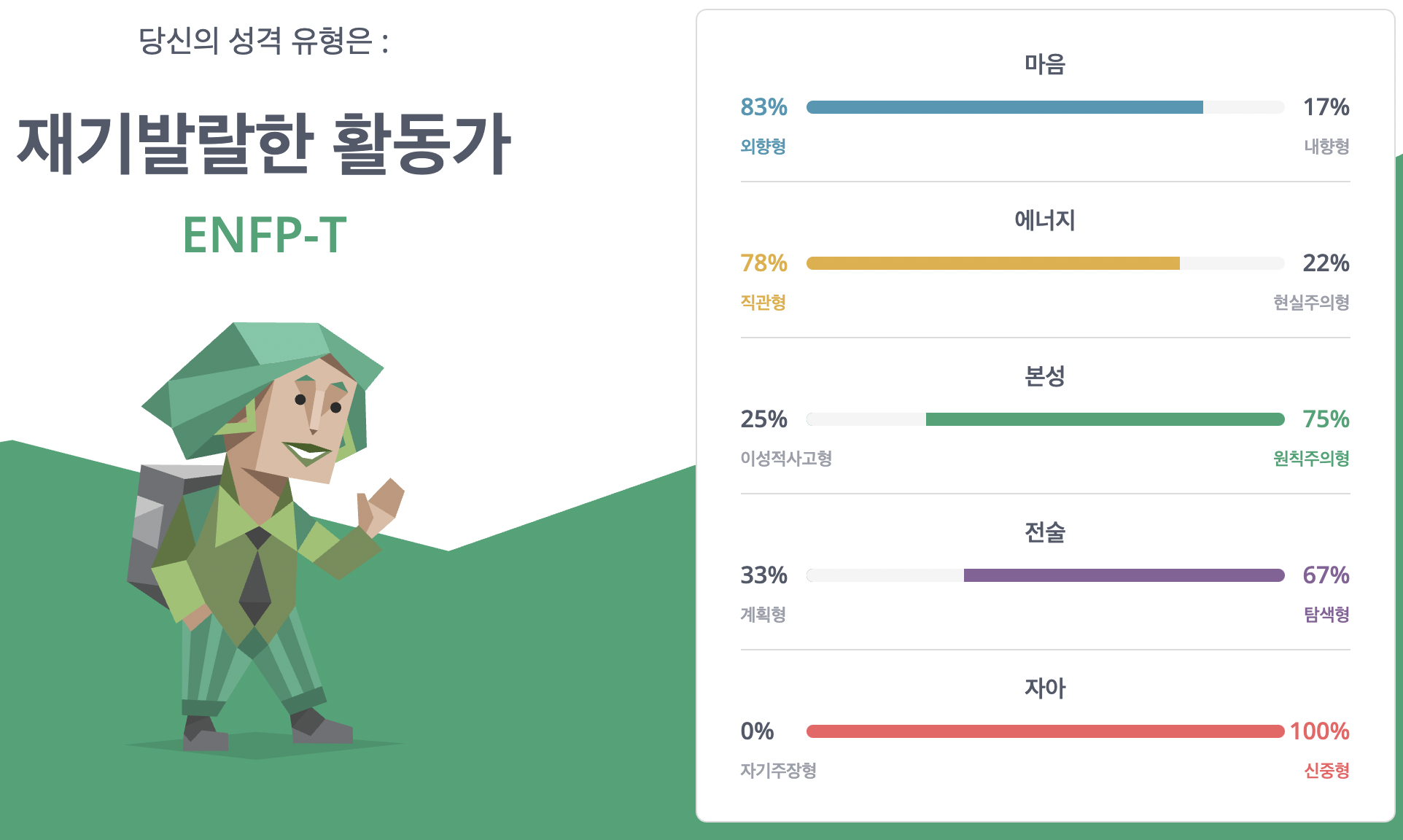 심지어 저 수치를 보면 신중형 100% ..자기주장 0% 너무 극단적인걸?