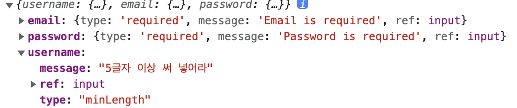 추가로, onInvalid에서는 error를 파라메터를 받아서 사용할 수 있다.